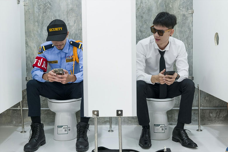 传闻泰国有一间公厕,木板隔间有鸟洞,正装的Shad一窥究竟,来到百鸟洞当然要打卡认证,Shad才坐下左边厕所有人进来了,保安小黑硬挺上翘diǎo,Shad毫不犹豫地吞食著,右边花衬衫小哥也进来了,肥嫩多汁的肠diǎo,Shad手口都用上,陌生的三人各取所需,三三两两对一,保安小黑喷的Shad满脸浓精!